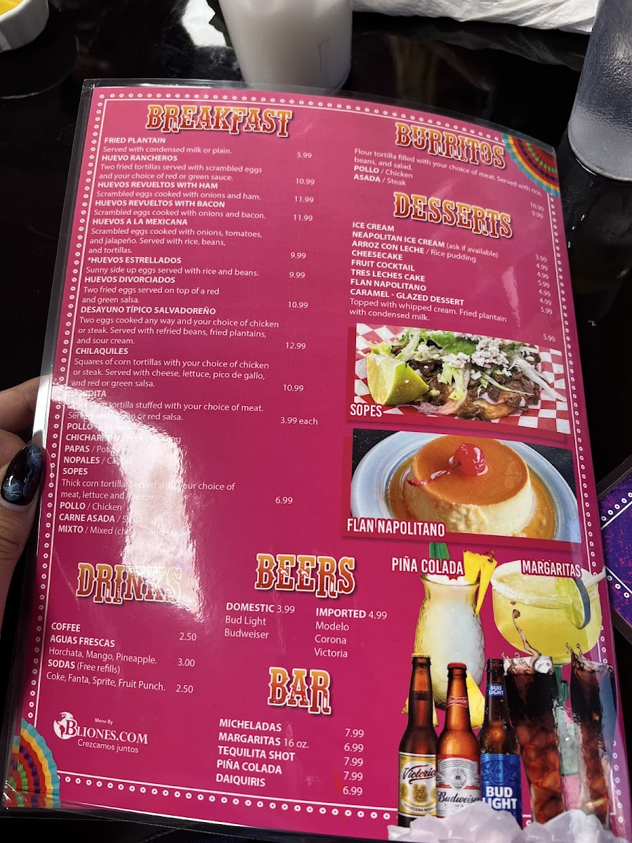 Served with rice and beans or fries.